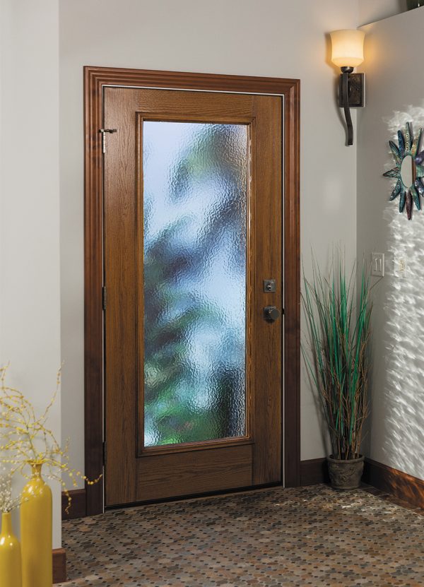 This Eclectic-style home features a Timbergrain Fiberglass Exterior Door, with a Full Lite door style and Cumulus glass.