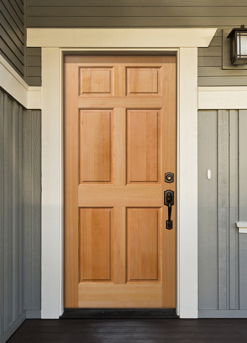 Products Shown: Exterior Door – Heritage Wood in Fir Glass: None Door Style: 6-Panel Hardware: Other